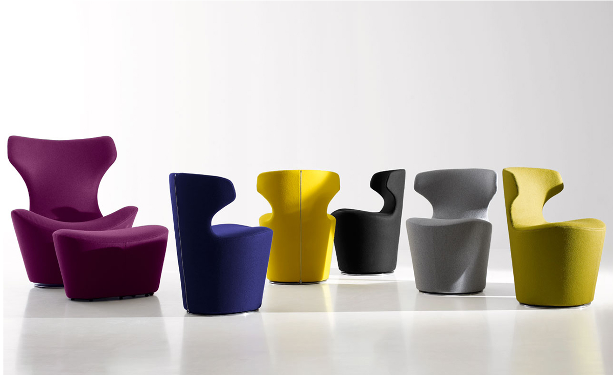 看似由單一材質一體成形的大型雕塑物件,Grande Papilio 流線形的設計從倒置的錐形體中雕塑而來。由下而上漸寬的椅背空間,提供了極致的舒適放鬆體驗。Grande Papilio 旋轉 360° 的底座系統能自由自在的環視空間中恣意流動的美好。強烈雕塑個性特質的 Papilio 系列家具也持續的擴大當中,不同大小和用途的 Papilio 家族:Papilio、Piccola Papilio、Grande Papilio、Love Papilio、Mini Papilio、Papilio Ottoman 提供了多元而完整的舒適空間。