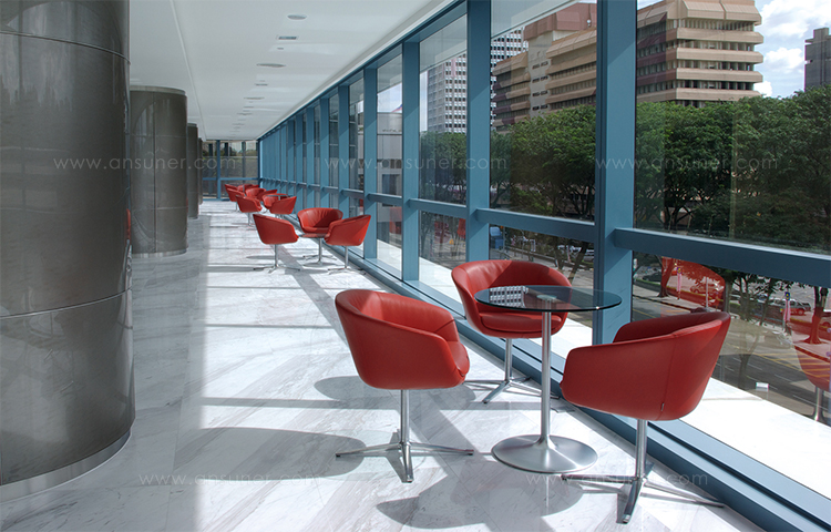 这是一张能提供豪华舒适感的软垫扶手椅。其轻柔的扶手,舒适的靠背,构成了线条迷人外形。依靠其细长的支架,椅子可以很随意的转动。同时与脚架类型相同的X茶几相配套。