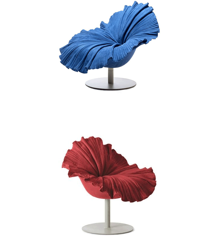 菲律宾设计师 Kenneth Cobonpue 设计了此款子名叫「开花 (Bloom) 」的椅子(Bloom Easy Armchair)。拟态一朵花盛开的模样,采用纯手工工艺将微纤维织物缝入碗状树脂椅座上,听起来就觉得很有科技感对吧,椅子下面的圆盘基座由钢铁制成,所以产品本身是十分的牢固安全的。