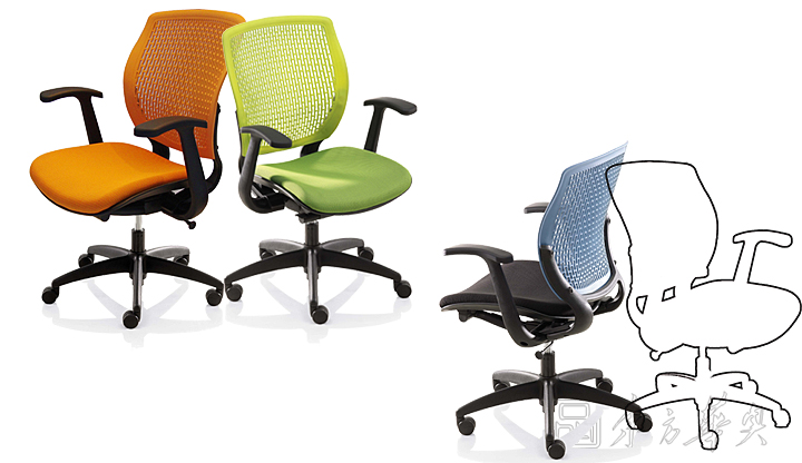 椅背:高弹力材质的塑胶背板,附有人体工学的腰靠设计,可随人体的活动巧妙变形,并同时提供均衡的身体支撑,保持嵴椎的曲线。尤其对下腰部位的支撑,更健康的解决了久坐的疲劳和不适。