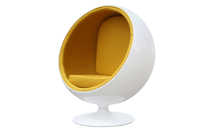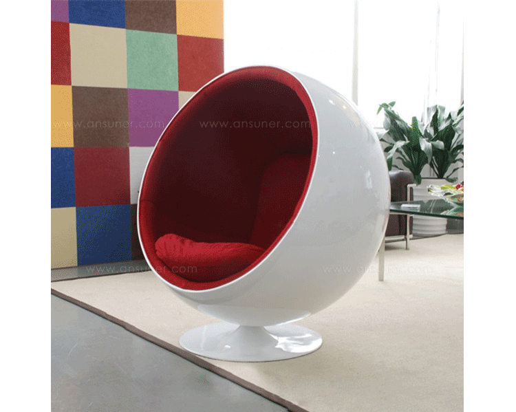 “球椅”是介乎于家具和建筑之间的一种产品,它好像“房间里的房间”,椅子很矮,坐进去,就仿佛陷入另外的一个世界,能迅速拥有安静舒适的环境,外界的噪音也被抵挡住。可以躲在里面冥想、放松身心,或者打私人电话。设计师阿尼奥就在自己那把原版的“球椅”内壁上装了一个红色的电话机,“球椅”提供一个相对私密的空间。椅子底部有轴,能360度旋转,坐在里面的人向外看,眼前的风景会随着转动而改变。这样,即使蜷缩在椅子里,也不会有与外界完全隔离的孤独感。就是这样一个狭小的空间,却带给了人们无比的安全感与舒适感,也就是这把椅子的诞生,掀开了“PODLIFE” 的篇章。"