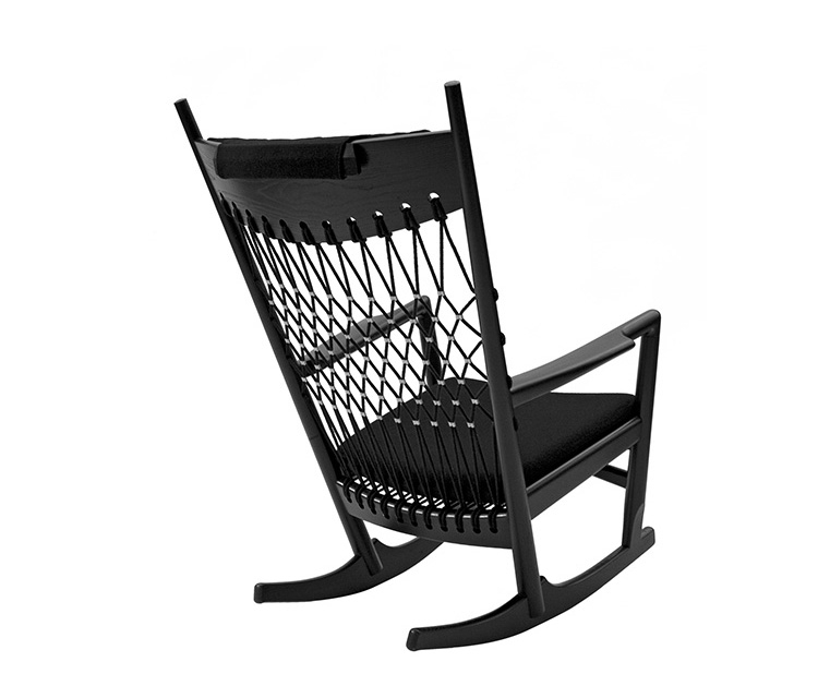Rocking Chair(摇椅)是大师Hans J. Wegner设计的众多摇椅中的经典之作。摇椅具有简洁的线条,精准的的人体工学结构,是Hans J. Wegner在1944年为身怀六甲的妻子设计,扶手前端微微向外展开,是为让妻子方便起身。实木制成,轻便耐用,简约单纯,仍于潮流中立于不败之地,为Hans J. Wegner最受欢迎的经典作品之一。我们已经能从中感受到圈椅的影子。摇椅水曲柳制作,坐垫麻布软布(内部填充优质海绵),棉绳编织(有白色,黑色,棕红色可选)。