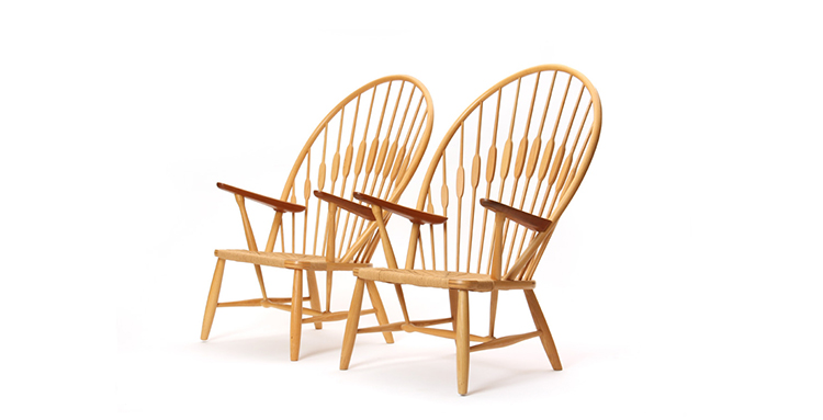 Hans Wegner 的孔雀椅,The Peacock Chair。Hans Wegner 1947年设计(虽然看上去很后现代主义),当时他到哥本哈根不久,离 Johannes Hansen 更近,激发了他的创新。Hans Wegner 善于继承传统,这种继承也不是挖古坟式的,而是很自然,没有压力,获取优点为我所用。孔雀椅起源于温莎椅子(Windsor chair),一种细骨靠背椅,18世纪流行于英美,温莎椅17世纪出现在英国,1726年由宾夕法尼亚的州长 Patrick Gordon 介绍进入美国。
