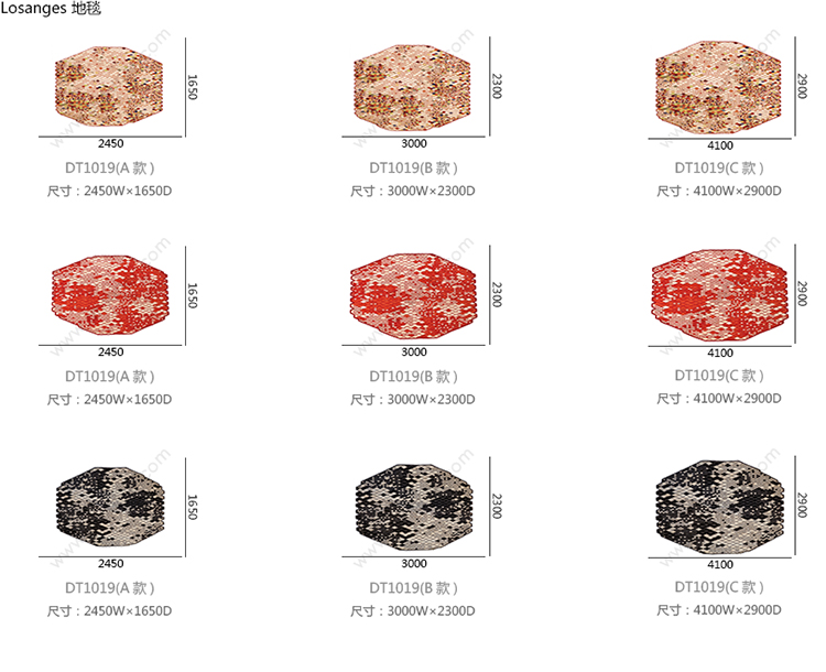 Losanges 地毯 系列尺寸/示意图