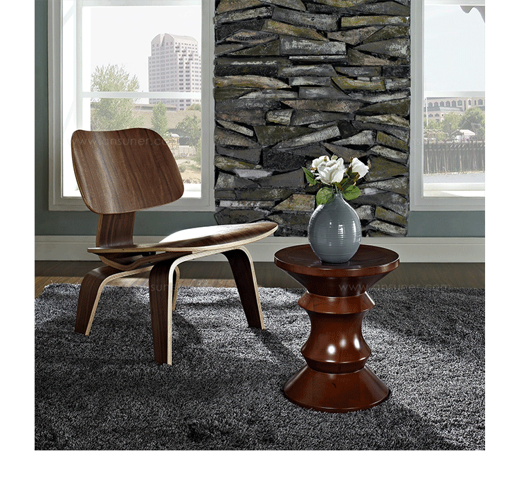 Eames Walnut Stool(伊姆斯胡桃木凳)是由美国著名大师伊姆斯夫妇(Charles and Ray Eames)于1960年专为纽约的Time-Life大楼的厅堂设计的凳子,灵感来自于国际象棋,独特个性的造型不仅精致美观,除了有着凳椅的作用,还能当做矮桌、装饰品。Eames Walnut Stool(伊姆斯胡桃木凳)在弧线坐面坐上去非常的舒适,厚实木结构,简单,是餐厅、酒店、家庭首选的艺术品家具,也是一个非常值得珍藏的家具。