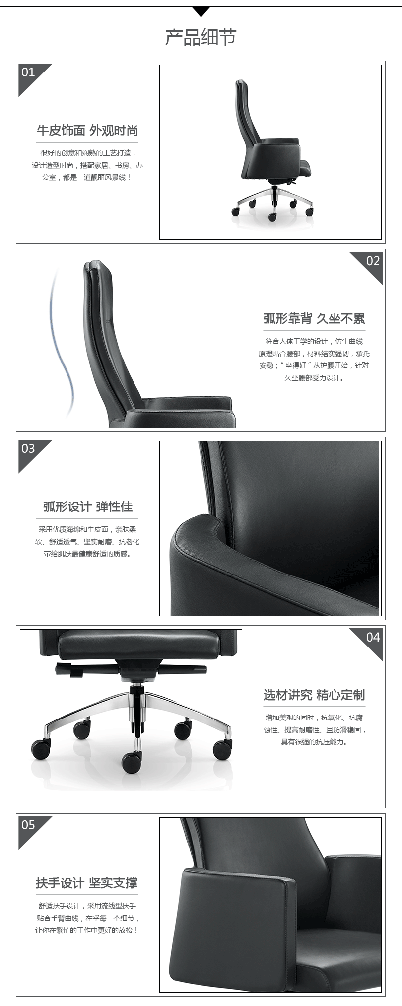 "采用优质海绵和牛皮面,亲肤柔软、舒适透气、坚实耐磨、抗老化带给肌肤最健康舒适的质感。