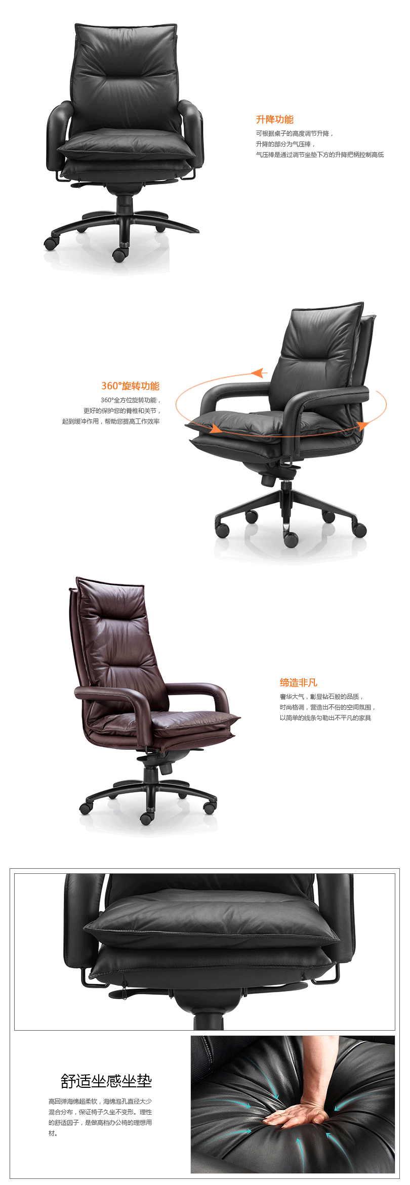 办公椅|现代真皮中班椅|办公家具|设计师家具|CG-E1047
