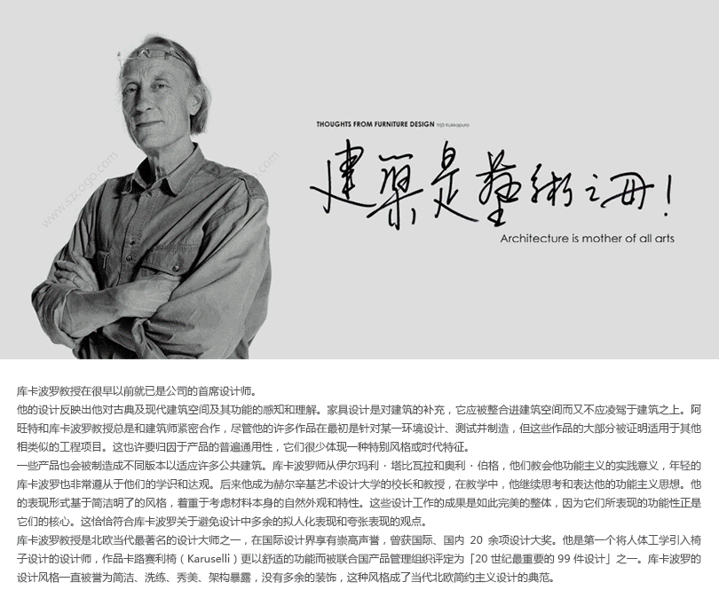 库卡波罗教授一开始就为礼堂设计了好几个标准化座椅系统,从而可以轻而易举地为不同的大厅开发特殊的椅子,尤其当设计时间很紧时则更能体现其优越性。