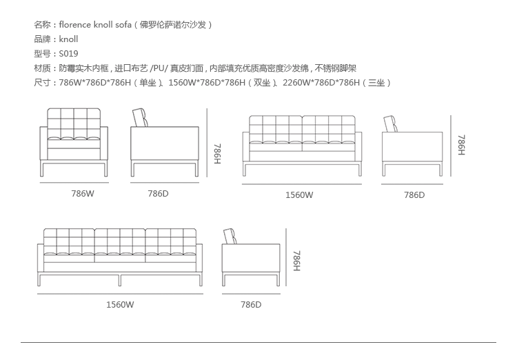 创意家具 - 坐具|沙发|办公家具|设计师家具|佛罗伦萨诺尔3人座沙发