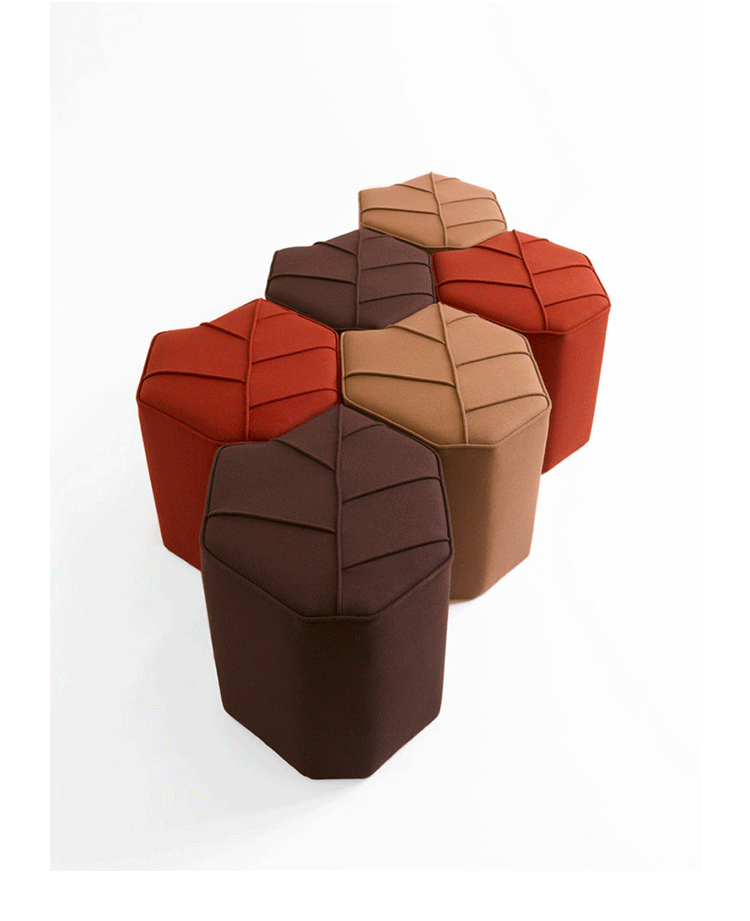 Leaf Pouf(树叶墩)是设计师Nicolette设计的作品。大多数的脚凳都只注重于形式和形状,很少能兼具椅子的功能。Leaf Pouf(树叶墩)不仅仅是一个脚凳,同时它也是一个极具吸引力的座凳,由经验丰富的工匠精心制作,精美别致,用料高级,采用高级Kvadrat羊毛(皮革)扪面。他们可以单独使用,作为一个独立的个体,在任何地方都是非常特别且令人印象深刻的,不会淹没在环境中。他们也可以多个组合,从而形成一个沙发床,还不失协调性和美感。无论用在任何地方,他们都可以满足您的创意,想法,发挥您的想象力自由组合。